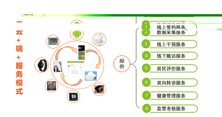 家庭醫生簽約平臺是實施家庭健康管理的服務平臺,它在社區范圍內,以家庭為單位,由社區衛生服務中心和區域醫療衛生協同服務體系提供支撐,建立居民健康檔案為分級診療制度建設逐步形成基層首診、雙向轉診、急慢分治、上下聯動的分級診療和就醫真正政 策落地模式,全方位的生命體征采集和檢測,線上線下的數據干預,為家庭成員提供綜合、連續、有效的基本衛生服務。