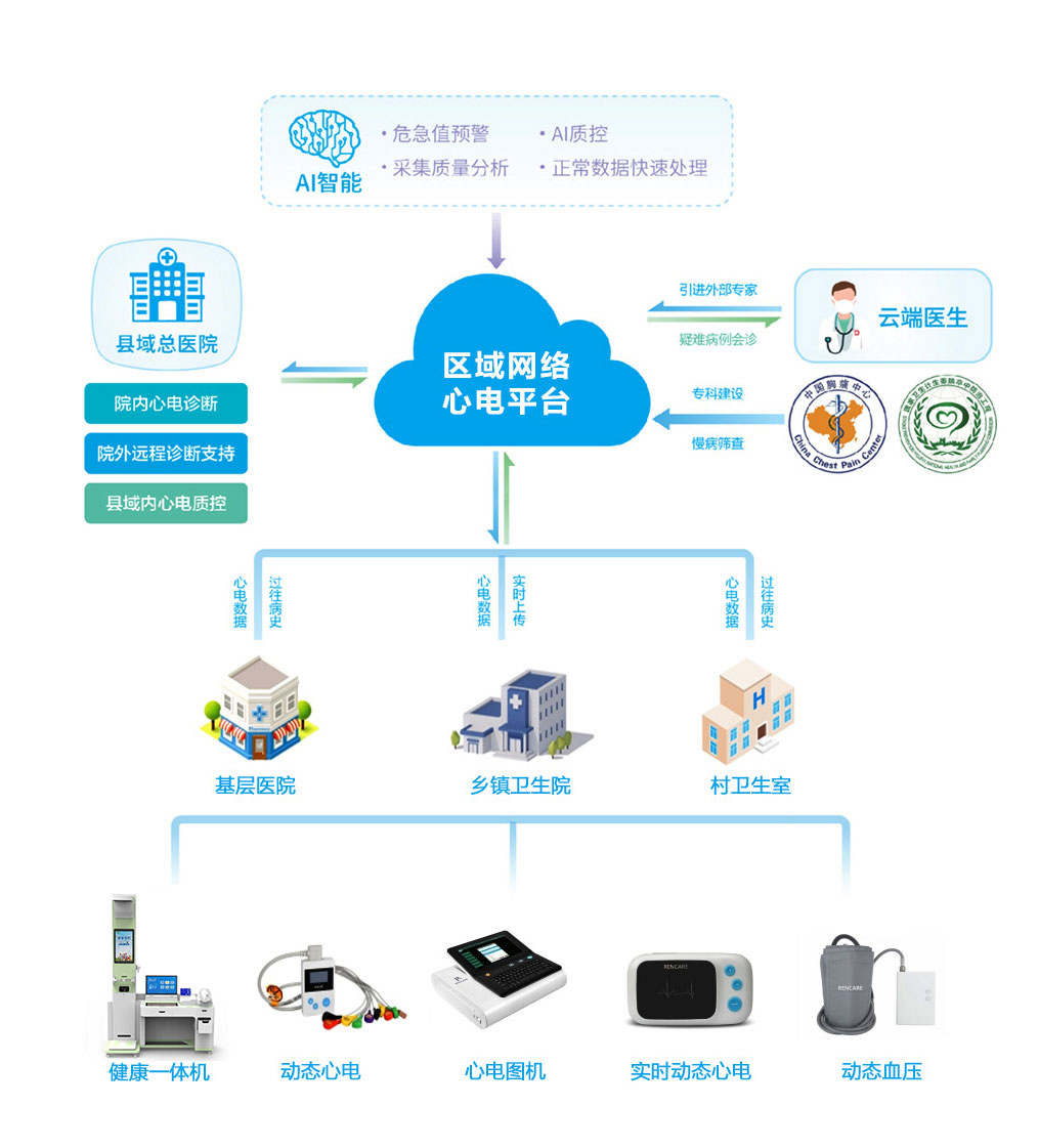 普瑞森·區域網絡心電平臺是指在一個區域內,所有醫療機構包括三級醫院和中心醫院及各社區服務中心,心電檢查實現集中管理,遠程技術支持,并和區域衛生系統實現整合,提供檢查,醫療服務,監管,預警等方面功能的網絡平臺。