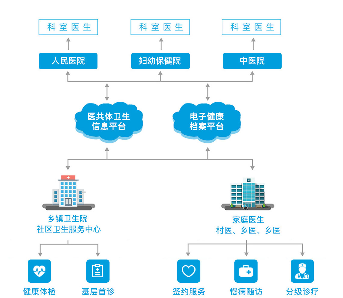 普瑞森·醫防融合建設方案以慢病防控為切入點,通過在醫共體內共享居民醫療信息和健康信息,打通村醫、鄉醫、縣級醫生三級之間的數據壁壘,從而建立“三高共管,六病同防”慢性病管理體系,實現基于醫防融合的整合型醫療服務,打通緊密型醫共體建設的“最后一公里服務”。