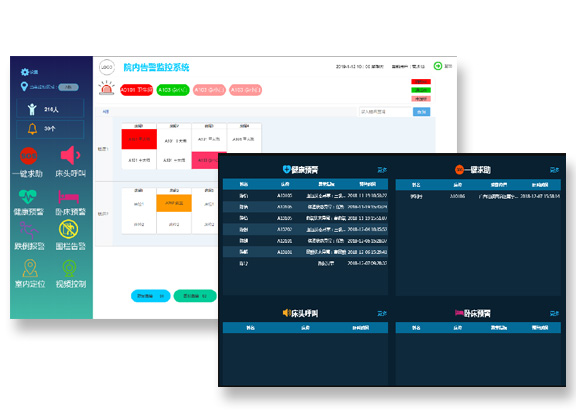 當發生各類報警時,硬件發出的告警可統一發送到告警監控系統,如定位終端、一鍵呼叫、電子血壓儀、血糖儀、智能床墊等,時時監控管理老人安全、健康情況,當有異常,系統自動彈出報警提示窗口,值班人員可以查看具體由哪個設備、關聯老人、具體位置,進行快速的應急處置。