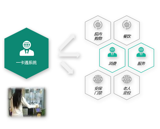 能在解決養老機構的管理的繁瑣及復雜,將安保門禁、老人定位、購物、餐飲、服務、消費集合于一體,實現一卡通的管理模式,一張老人卡記錄老人的行動軌跡及所有的消費明細